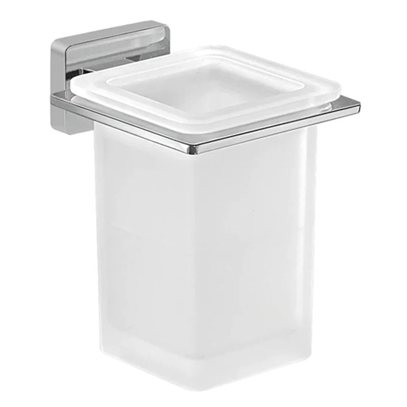 Gedy Atena Zahnputzbecher Wandmontage aus Stahl und Cromall, verchromtes Modell, mit Milchglasbehälter, Maße 8,1x10x10,7cm.