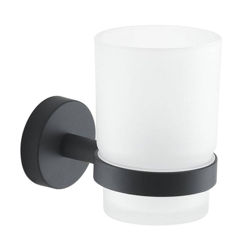 Gedy Eros Zahnputzbecher Wandmontage mattschwarz und Glas 2310-14