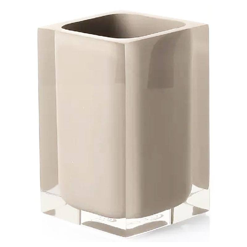 Gedy Rainbow Zahnputzbecher, hell graubeige, aus Harz, Maße 7,2x7,2x11 cm.