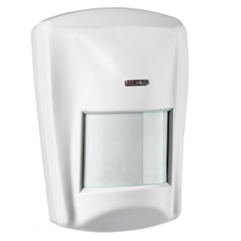 It is a detector with passive infrared motion sensor (PIR), which is able to detect movements in an assigned area and report it to the control panel to activate the intrusion alarm. The base of the product has provisions for holes that allow installation on a flat surface or in a corner. The detector has a tamper switch that is activated when the cover is opened, or if it is detached from the wall. It can also send an alert to signal a communication or low battery problem. The detector is designed to operate with a detection range of 12 meters, mounted at a height of 2 meters from the ground.
