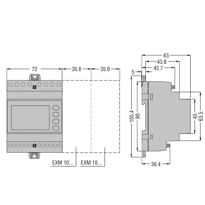 - Degree of protection (IEC): IP40 front; IP20 on terminals