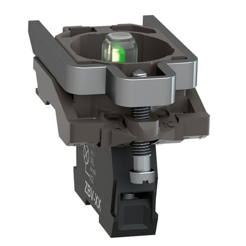 It is powered by 24 VAC/DC and uses screw terminals. It has a metal body and is compatible with Harmony XB4 indicator lamps. This light element allows for quick and easy replacement and configuration of warning units. It can be easily installed and replaced on compatible selector units or light buttons by snap-on mounting and connected with simple screw connections. Allows signaling units to be visually distinguished through integrated LED illumination. Protects operators from accidental contact with live circuits through its IP20 rating.