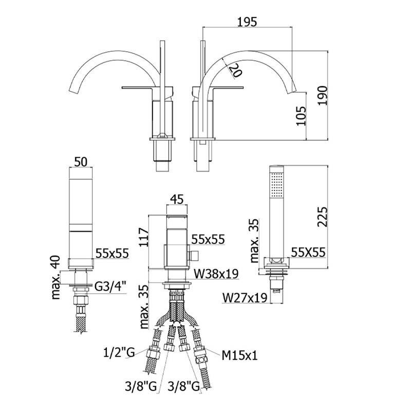 - Spout Length: 19.5 cm