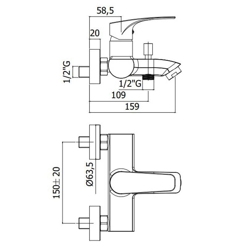 Paffoni Lime external bathtub and shower tap complete with ABS articulated wall bracket with the following features: