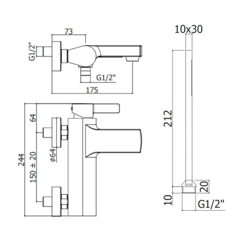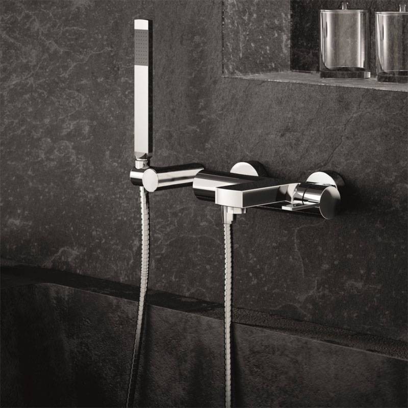 Paffoni Rockchrome bathtub tap with wall bracket articulated with the following features:
