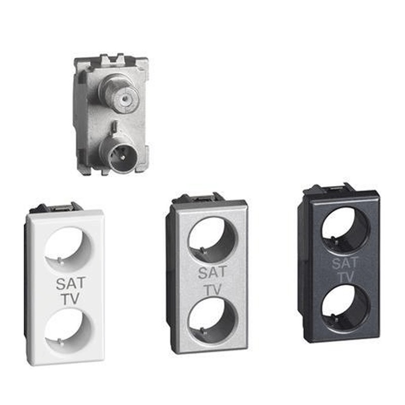 Direct demixed coaxial socket for TV antenna systems. Supplied with neutral motor and finishing panels in white, tech grey and anthracite grey.