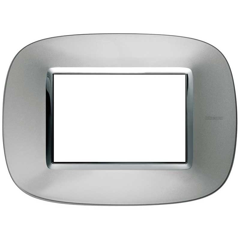 Round plate 3 places Bticino Axolute for support H4703. Color Brushed Aluminum. It is not possible to install the plate on other series Bticino but only on Axolute series.