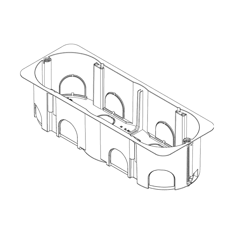 Flush mounting box Vimar 6/7 modules for light walls, light blue colour.