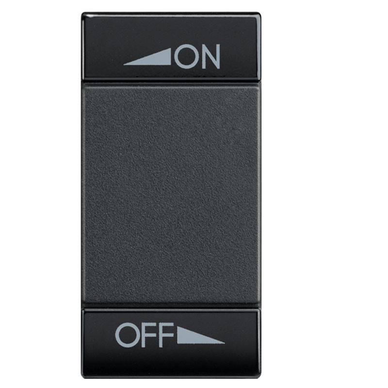 Bticino Living Light 2-function switch cover with ON OFF silkscreen printing 1 module anthracite grey colour.