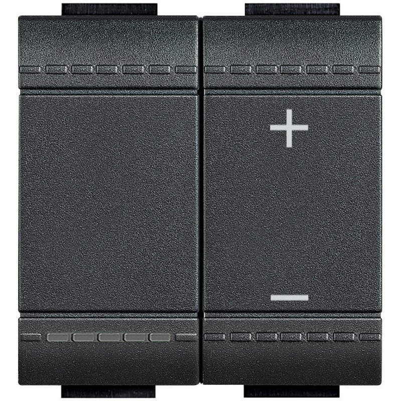 Dimmer button Bticino LivingLight anthracite. The dimmer adjusts the brightness of any LED lamp, incandescent and energy saving. The lamps themselves must be dimmable otherwise it does not work.
