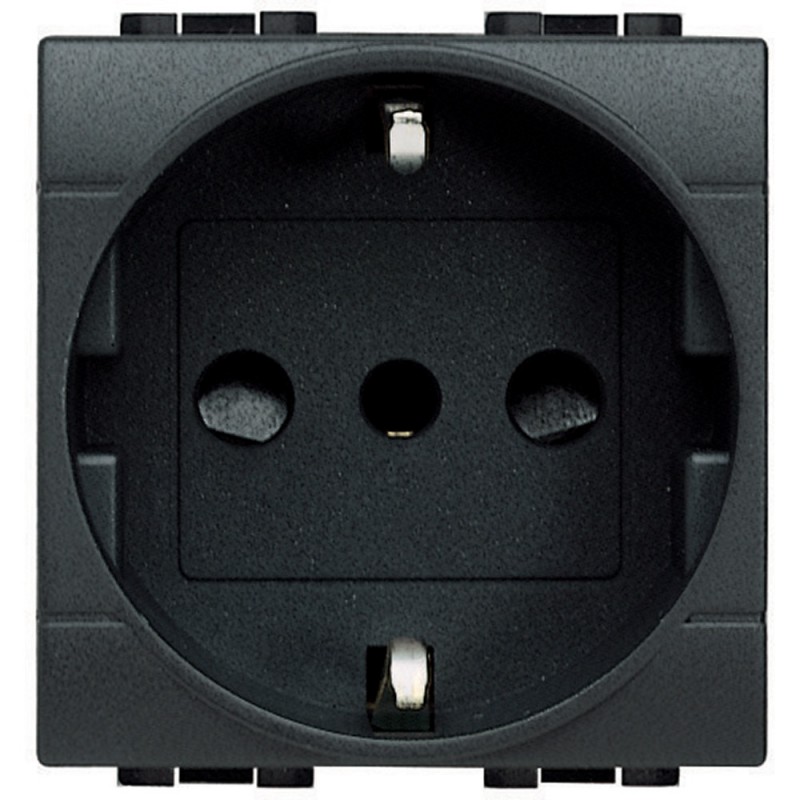 Bticino LivingLight anthracite schuko electrical outlet. The schuko electrical outlet also known as German outlet allows you to insert inside it only schuko plugs.