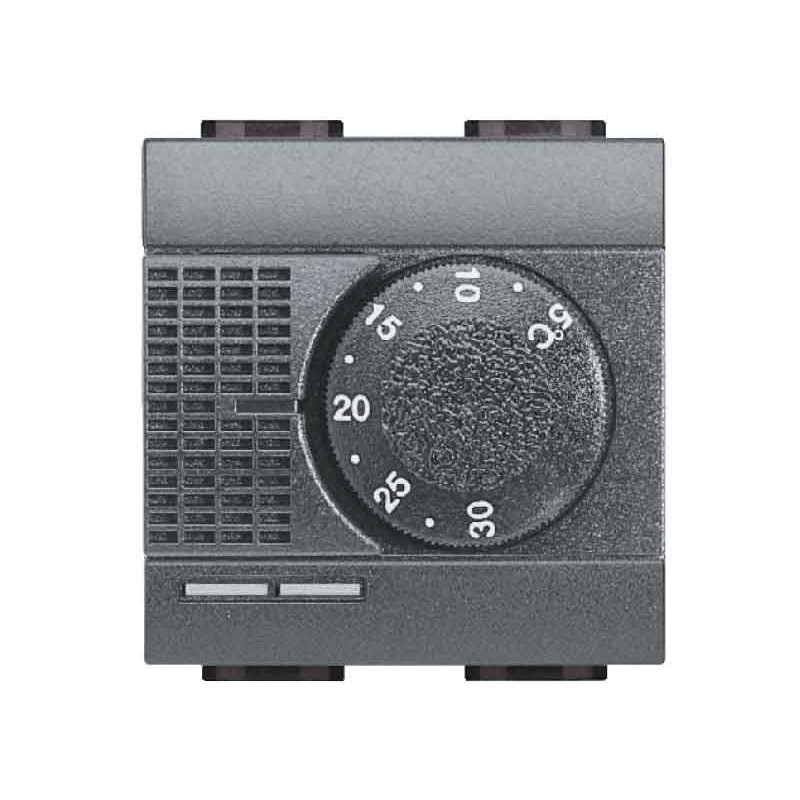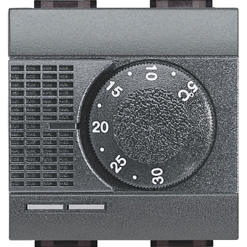 Bticino Livinglight room thermostat for heating and air conditioning, relay output 1 change-over contact 2A 250 Vac, power supply 230 Vac, anthracite colour.