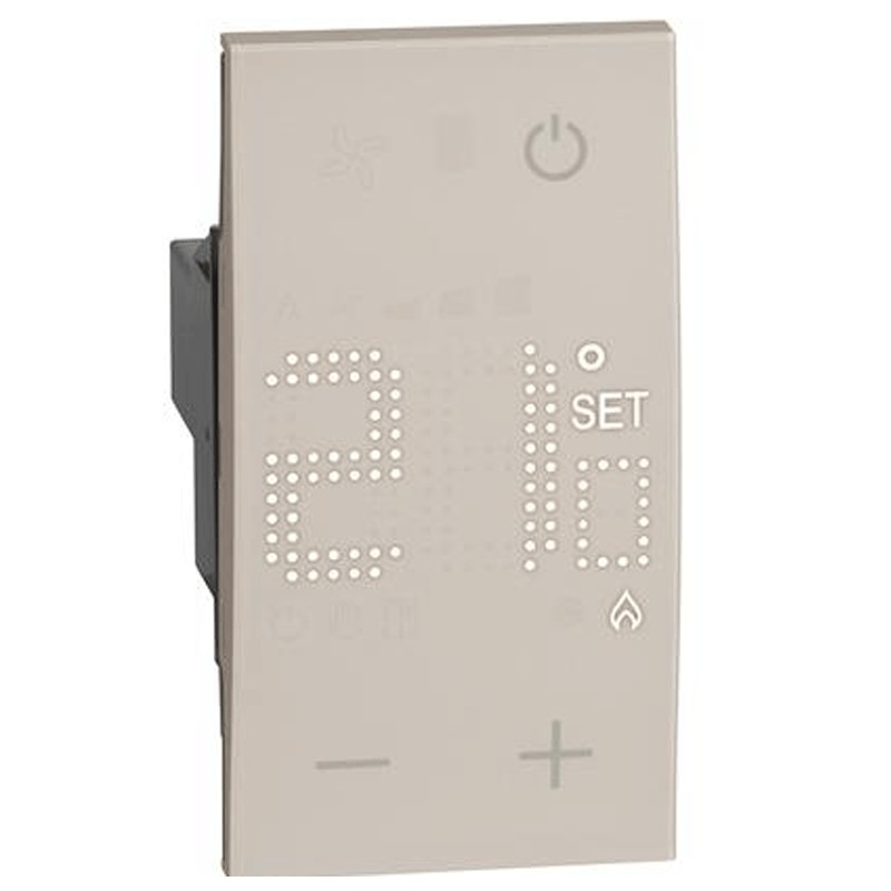 Bticino Living Now electronic room thermostat, power supply 230V, sand colour, 2 modules, relay output with 1 potential-free changeover contact 5 (2) A.