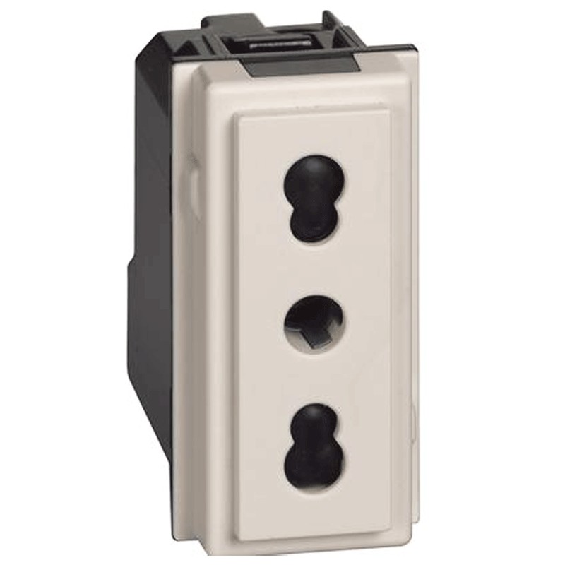Outlet Bypass Bticino Living Now 2P+T 10/16A 250 Va.c. 1 module, centre distance 19 mm and 26 mm - alveoli screened - for plugs 2 P and 2 P+e 10 and 16 A, color of sand. The electrical outlet bypass allows you to insert inside both plugs 10A(small plugs) and the plugs 16A (large thorns).