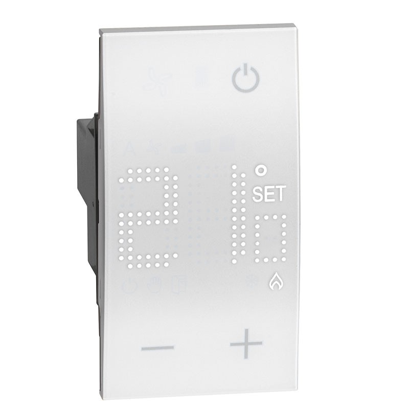 Bticino Living Now electronic room thermostat, 230V power supply, white, 2 modules, relay output with 1 potential-free contact in deviation 5 (2) A.