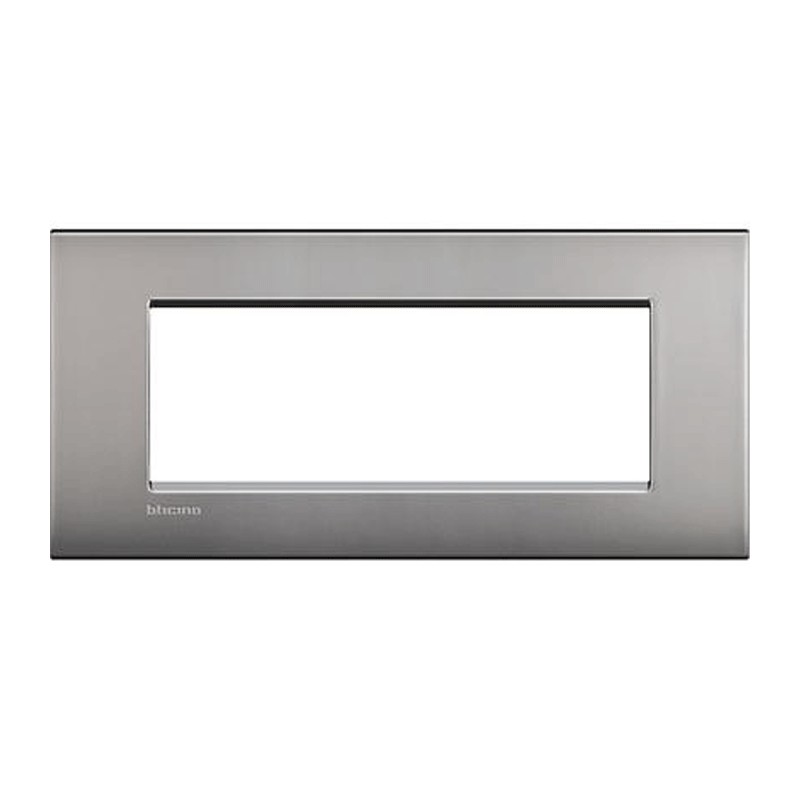 AIR plate 7 modules Bticino LivingLight lava black. The plate can be installed only on frame LN4707C. It is not possible to install the plate on other Bticino series, but only on the LivingLight series.