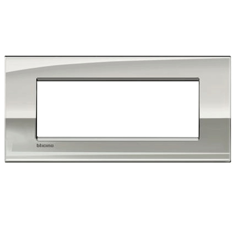 AIR plate 7 modules Bticino LivingLight palladium polished. The plate can be installed only on frame LN4707C. It is not possible to install the plate on other Bticino series, but only on the LivingLight series.