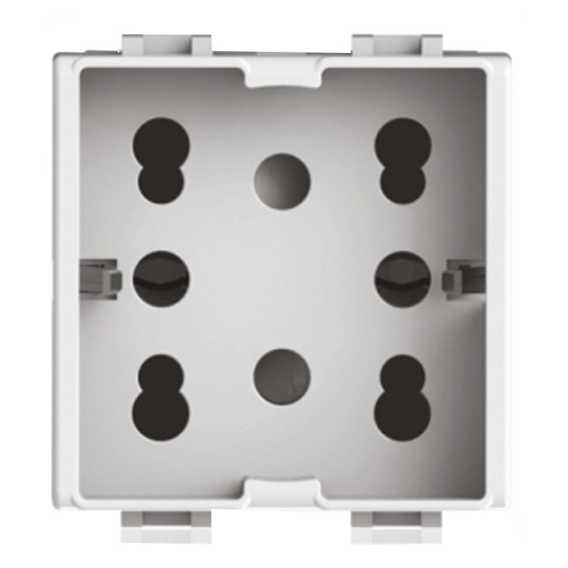 Universal double-ended electric socket and schuko 10/16A Side 4Box Unika, 2 modules, compatible with Bticino Matix series. It is possible to insert inside it 3 small and big plugs and also the schuko socket.