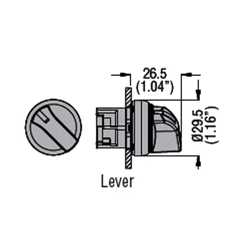 Lovato Platinum short lever selector switch, 2 positions 0-1, 22 mm diameter.