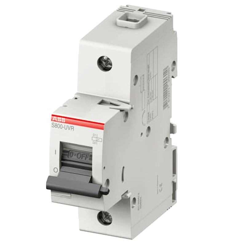 The minimum voltage coil can be controlled by an emergency pushbutton to cut off the power supply in complete safety. It is mounted on the left side of the S800 breaker.