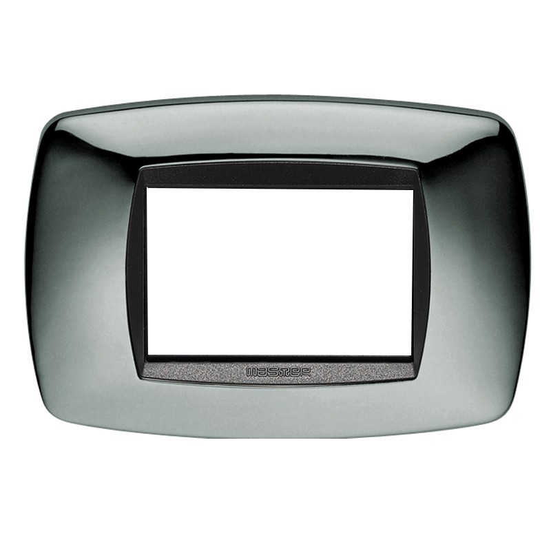 Master Modo plate 3 modules chrome color. The plate mounts on frames 38003, 38003-F, or through adapter 39033 the plate is compatible with the frames LN4703 and L4703 Bticino Living series and LivingLight.