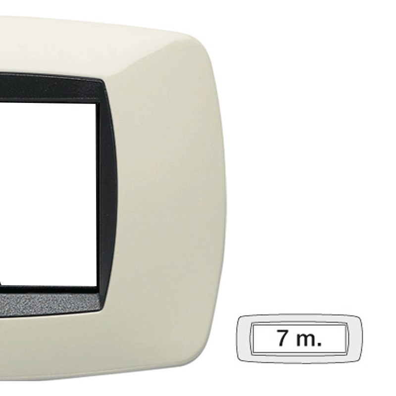 Master Modo plate 7 modules ivory. The plate mounts on frames 38007, 38007-F, or through adapter 39037 the plate is compatible with frames LN4707 and L4707 of Bticino Living and LivingLight series.