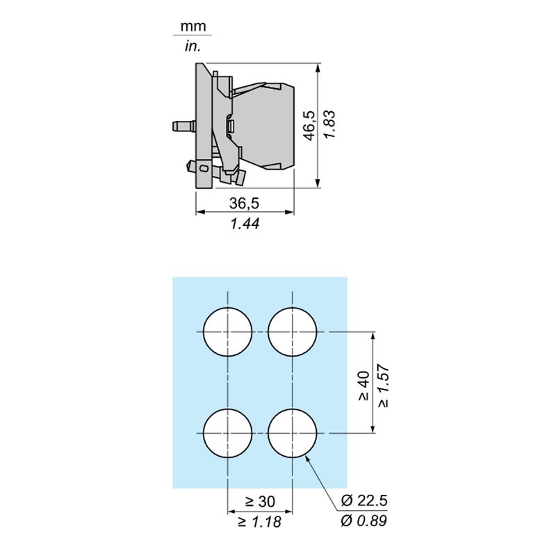 Schneider body for Indicator lamp integrated blue LED with the following features: