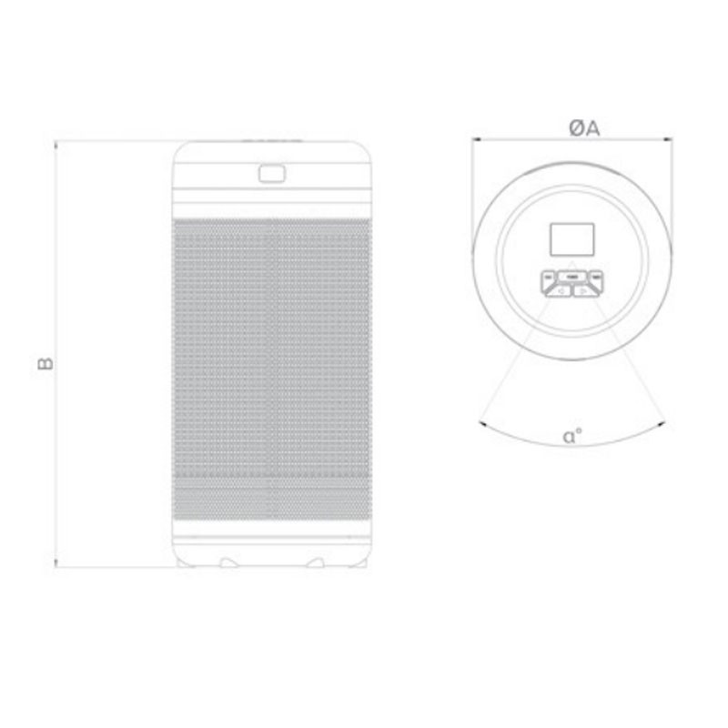- Control panel with LCD display and push-button panel, placed on the upper portion, for: turning on/off the product, activation of automatic oscillation on the horizontal plane, selection of operating modes, LOW: the fan heater constantly operates at minimum power (1,000W), HIGH: the fan heater constantly operates at maximum power (2,000 W)