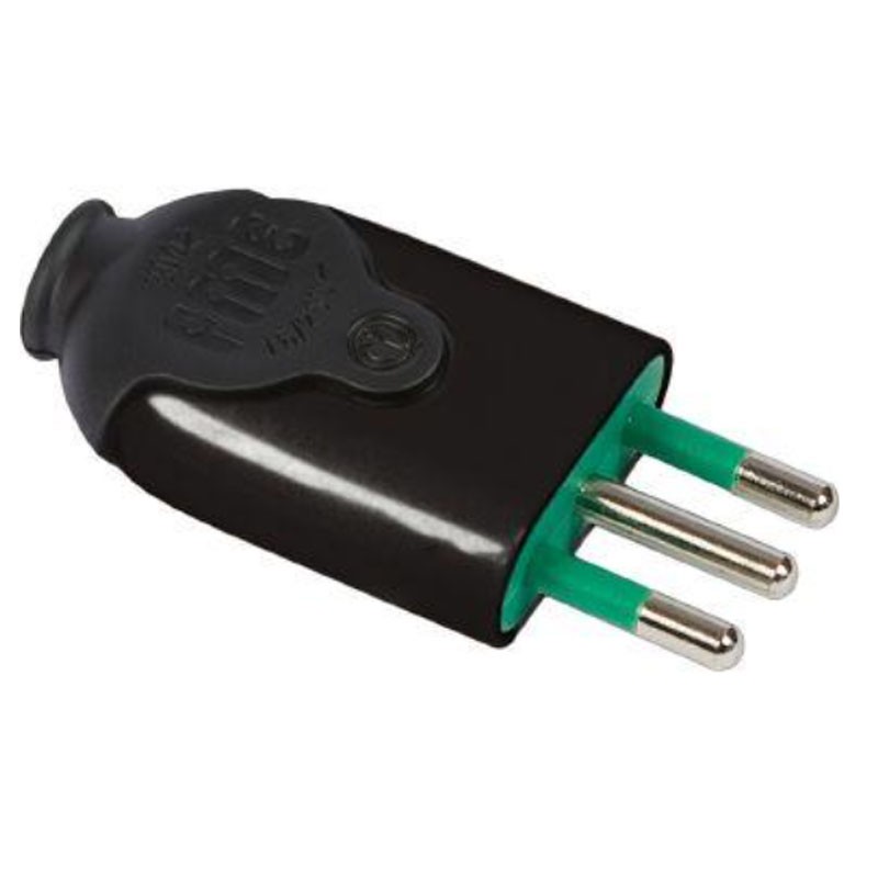 Standard plug Fanton 2X10A+T Black brass Pins, nickel plated, Frequency: 50/60Hz, Voltage: 250V~