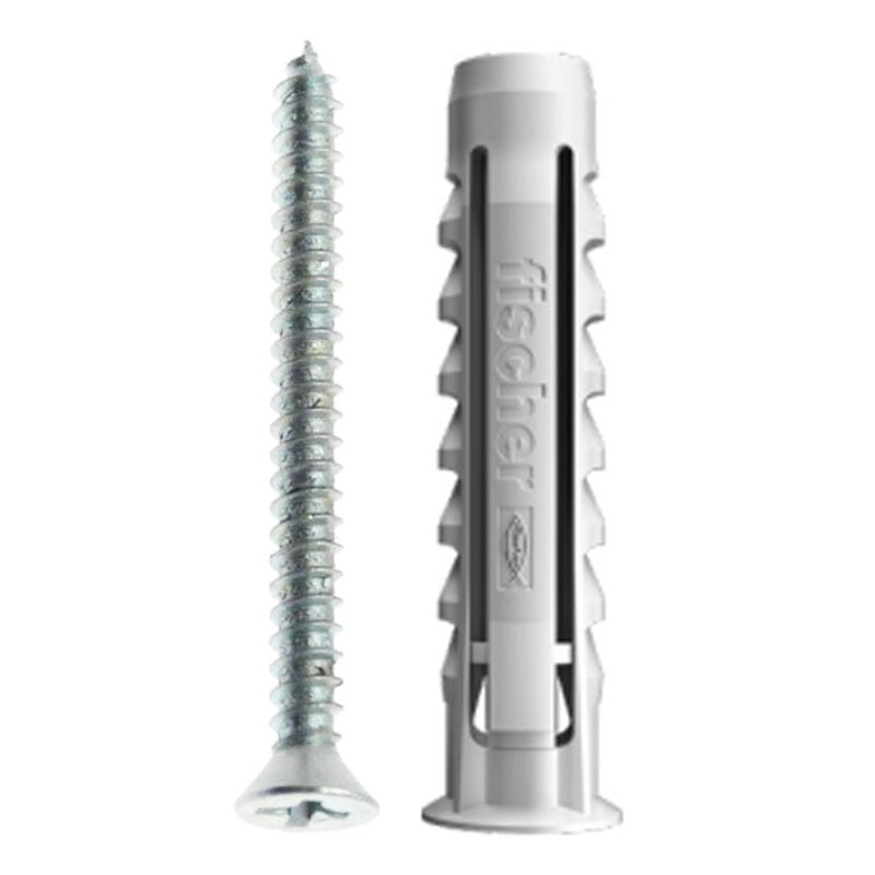 Pay in installments with KlarnaFischer's SX S dowels provide support with high performance on numerous civil applications including everyday use on concrete, brick and natural stone. These new-generation nylon dowels can be used for fixing cabinets, lamps, letterboxes, TV consoles, bathroom accessories, grating systems, shelving... The advantage of fischer's SX S dowel is that it transfers force optimally into the building material due to its 4-sector expansion. In addition to the normal expansion, the high-quality nylon enables secure and permanent fastening. Variants with pre-shaped edges prevent the dowel from slipping into the hole.