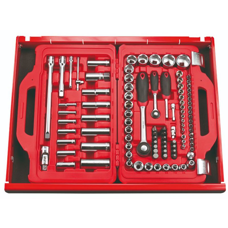 - Including reversible 1/4" and 1/2" ratchets with 72-tooth mechanism and socket release system