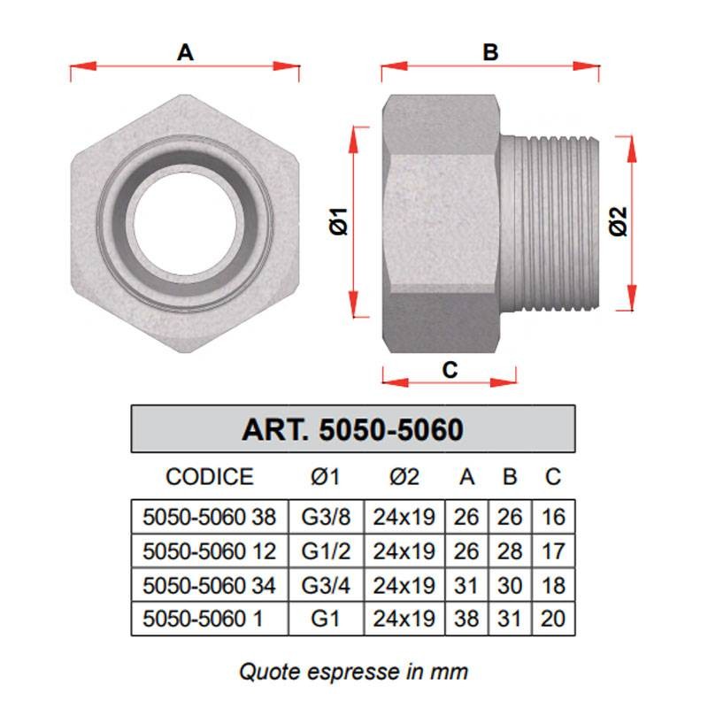 Far Niplex straight fitting 3/4x18 F brass rubber seal 5060 34G18