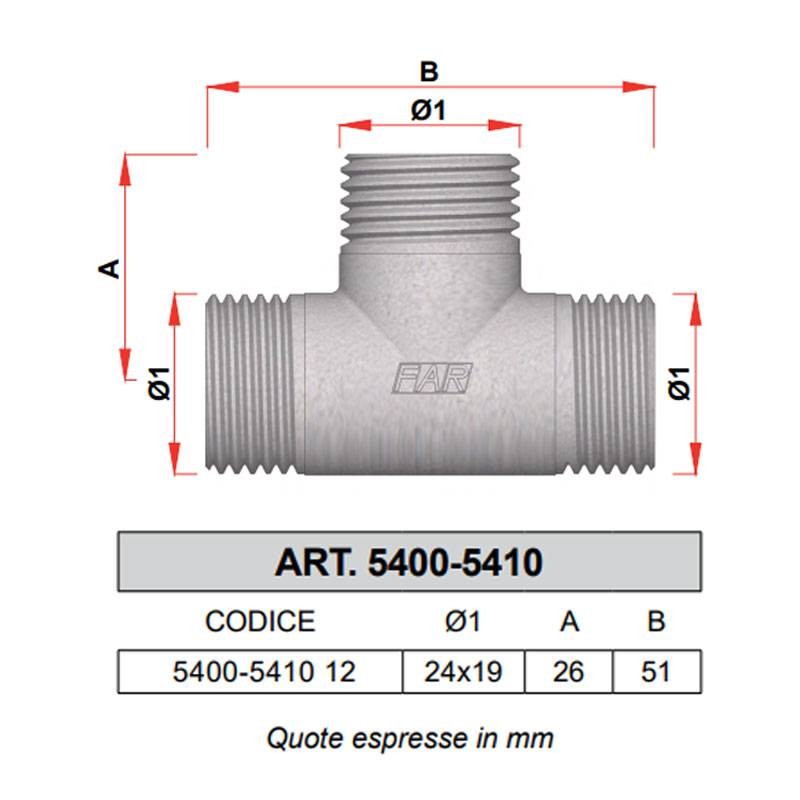 Far T-fitting 24X19 monocone chrome plated brass 5410 12