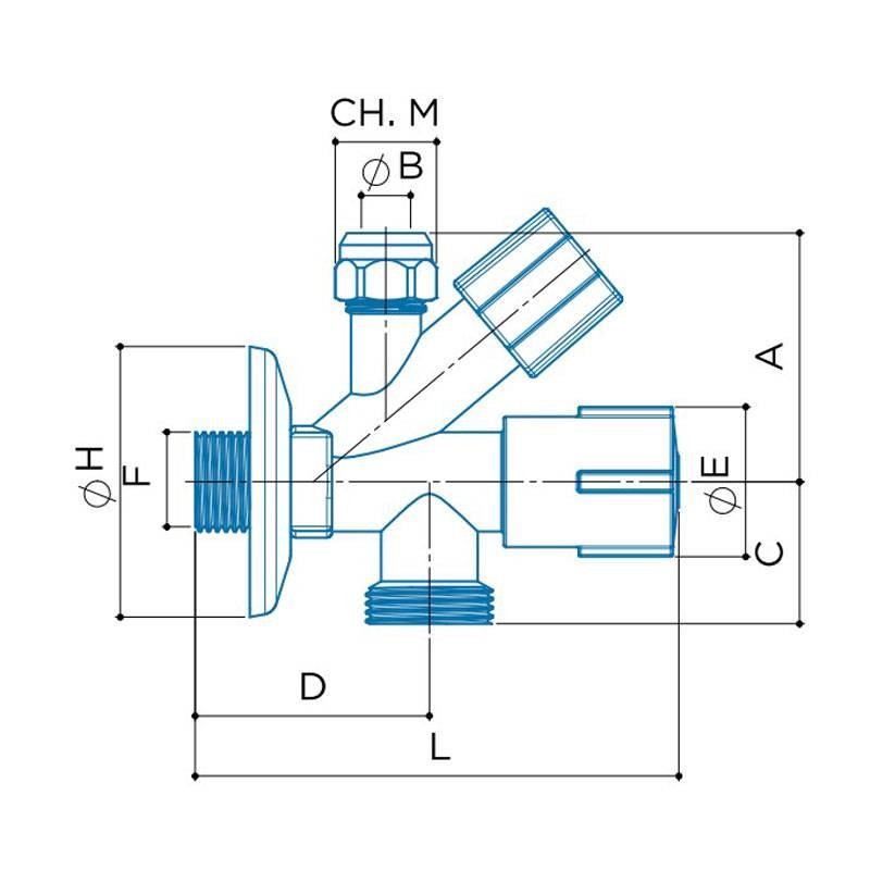 Luxor 2-outlet washing machine screw valve Fittings 3/4 - 3/8 - 1/2 70402101CC