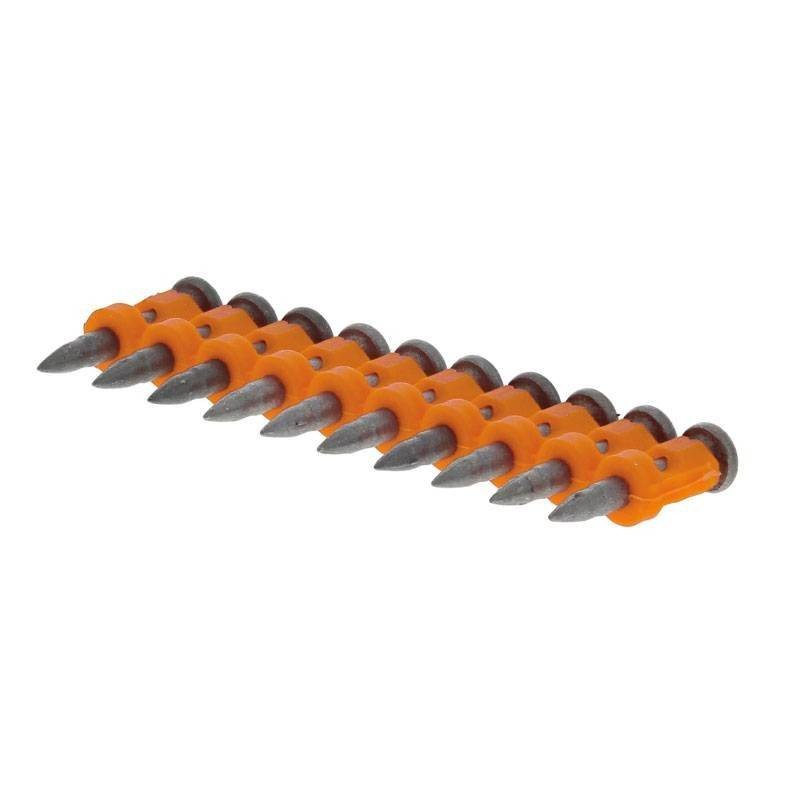 High performance nails for steel, hard concrete, including prestressed concrete. Packed with gas canisters.