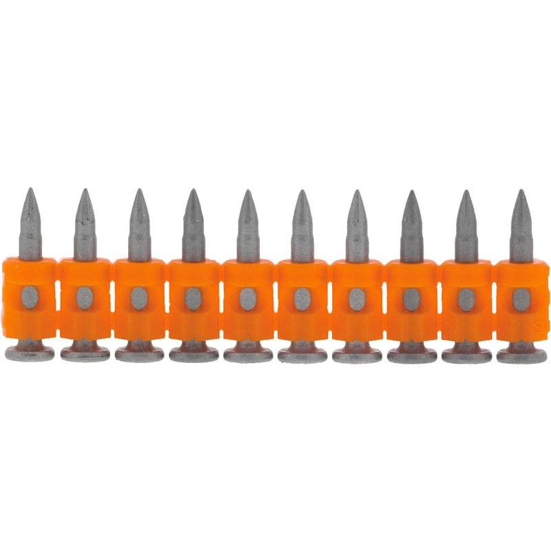High performance nails for steel, hard concrete, even prestressed concrete.