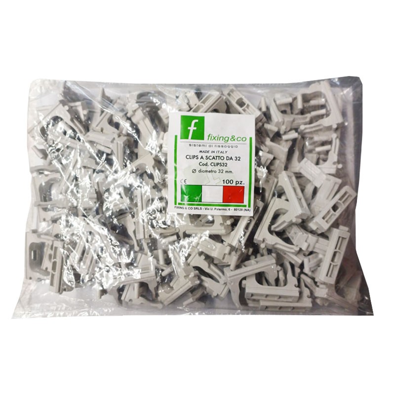 Nylon Snap Clips Fixing 32mm for pipes pack 100 pieces CLIPS32