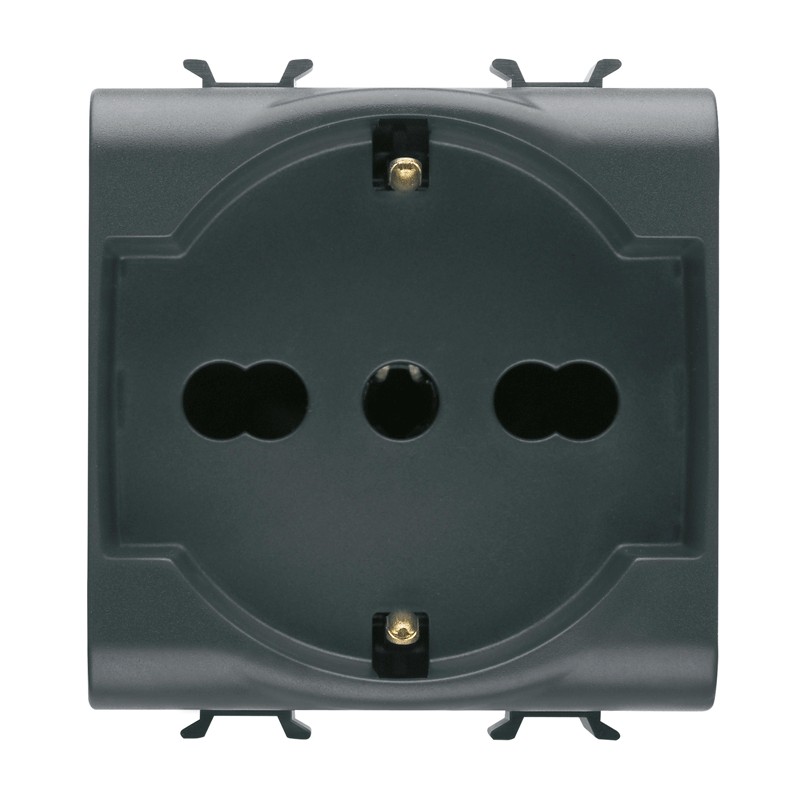 Gewiss Chorus 250V- 2P+E 16A bivalent schuko socket, 2 modules, black colour