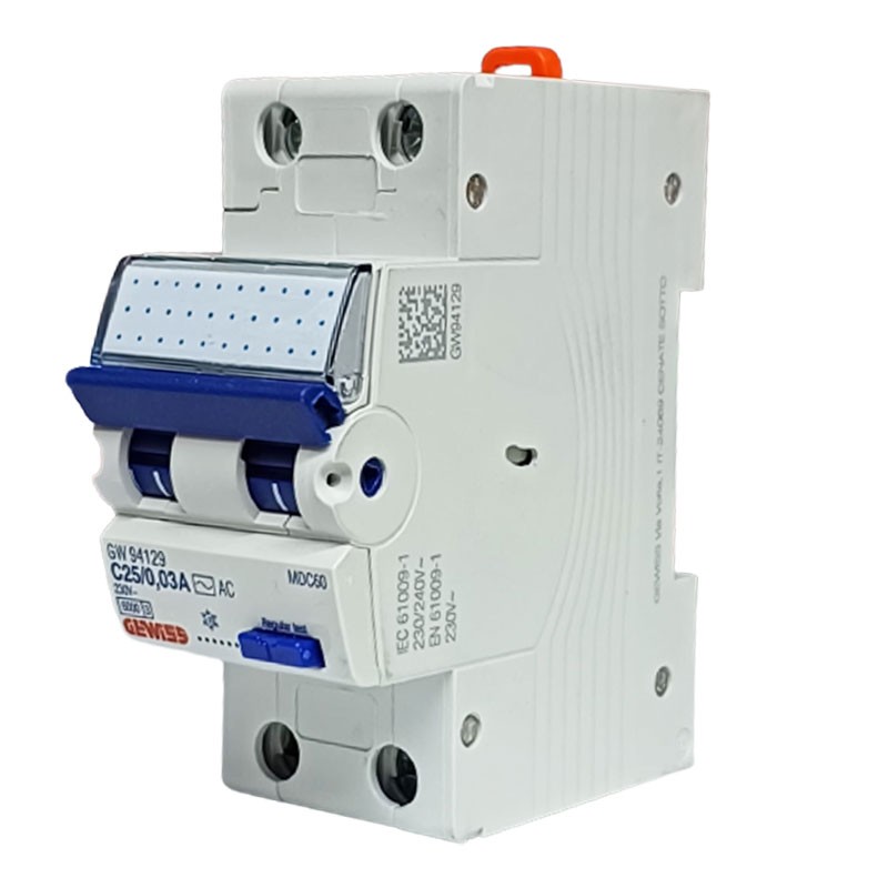 Gewiss differential circuit breaker 25A 2P 30MA AC 6KA 2 Modules with the following characteristics: