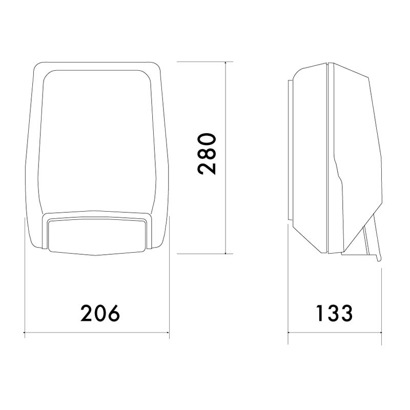 - Dimensions (WxDxH) 206 x 133 x 280 mm