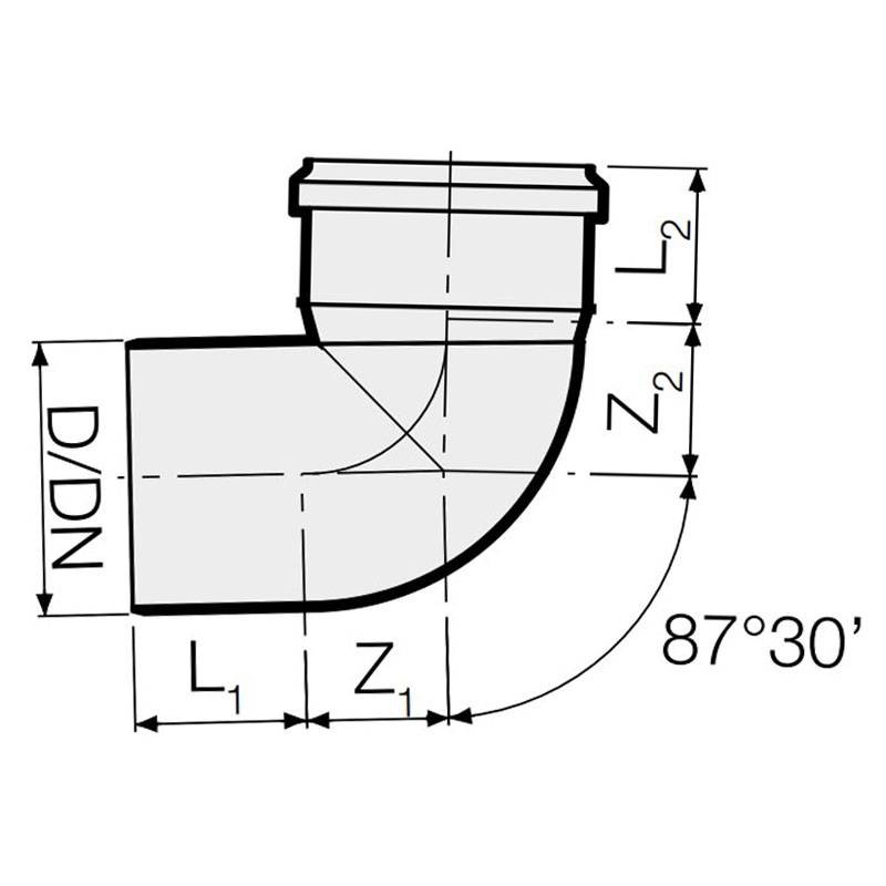 87-degree 30' Soil pipe fitting for Valsir PP Polypropylene PP3 plug-in soundproofing waste pipes with the following characteristics: