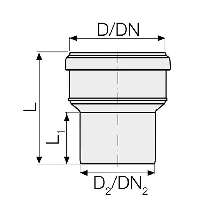 Valsir PP Polypropylene PP3 concentric reduction for plug-in drain pipes with the following characteristics: