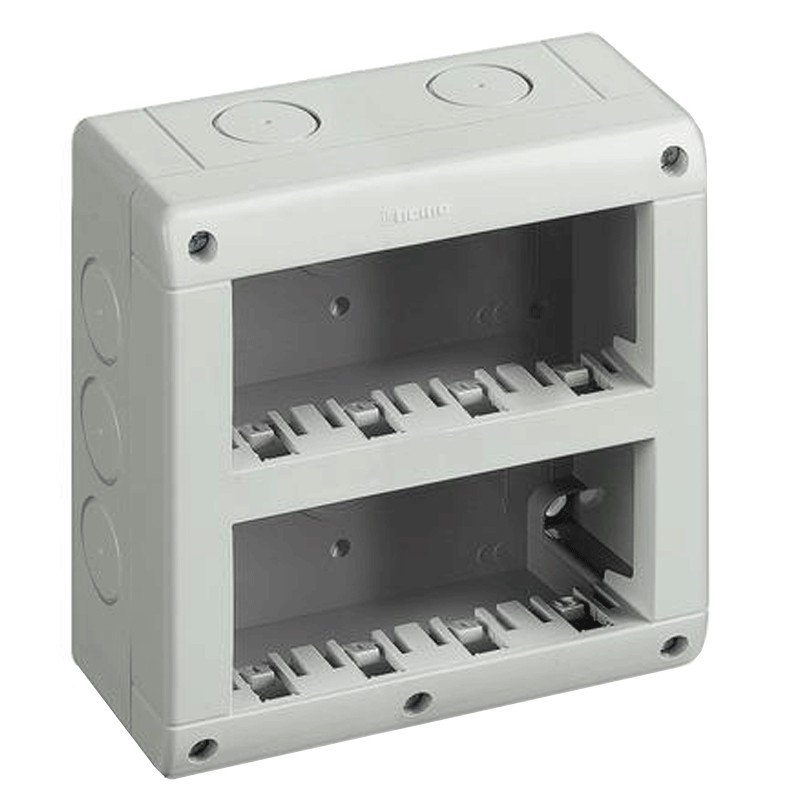 Bticino 8 modules case, it is possible to install inside it all the products of the Bticino Matix series, or it is possible to install the Magic modules with the special adapter 25703/1. Not compatible with 4Box UNIKO controls.