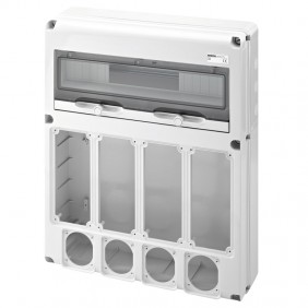 Gewiss switchboard, 14 modules with 2 horizontal IB flanges for industrial sockets.