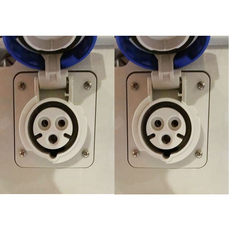 Gewiss wired control panel, 10 modules with 4 vertical IB flanges for industrial sockets. With cable and plug, portable and mobile article.