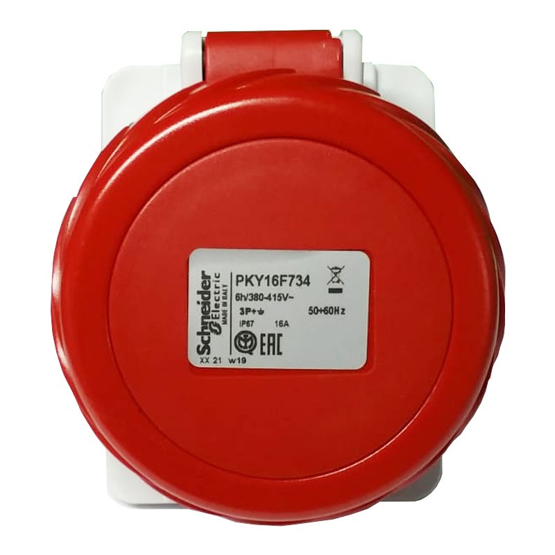 Schneider industrial socket recessed 3X16A+E 400V red PKY16F734