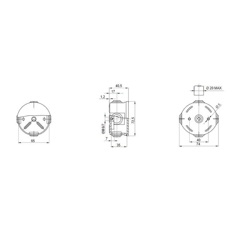 - Internal dimensions BxHxP (mm) Ø 65x35