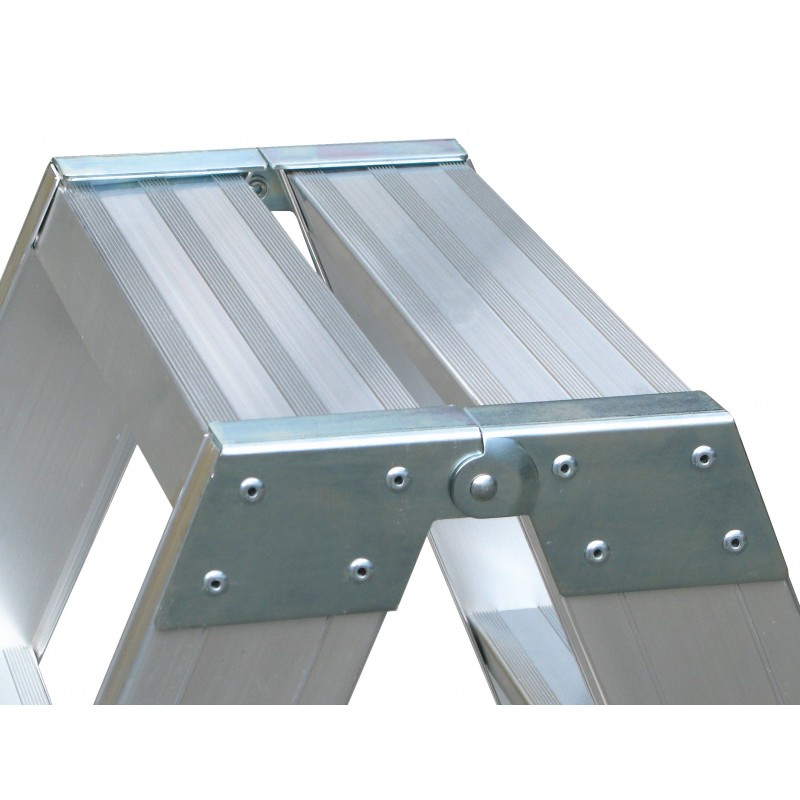 Pay in installments with KlarnaFEATURES: top Step anti-slip mm deep. 83 joined to the mast by means of sturdy welding corner hidden from view, Pillar - boxed to double soul mm. 80 x 23 - With belt nylon safety anti-opening - reinforced Ribs aluminum anti-rust welded to the stiffener base with anti-shock Feet, plus surface with anti-slip - Packing shrink film strong 80 microns - Year of production and brand of the producer - user's manual, and rules of use. An ideal tool for use in internal and external flat surfaces, very robust and particularly reliable in time, allows the dual ascent and dual effectiveness always in the utmost comfort and security.