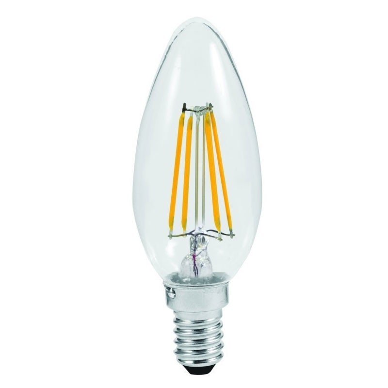 Bulb Candle Shape LED Filament Poliplast, power 5W, warm light 3000K attack E14, 550 lumens.