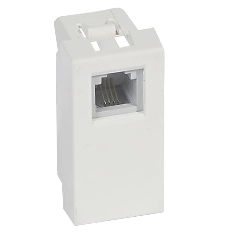 Telephone socket/connector with RJ11 plug, Legrand Vela series 1 module, white colour. To be applied on supports 072842,072843,072844,072846.